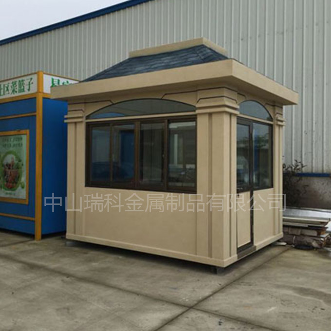 ? 中山瑞科金屬制品有限公司是集設計研發(fā)、制作、銷售于一體的私營企業(yè)。經(jīng)多年生產經(jīng)驗,已自主設計多種鋼結構崗亭,并投入市場使用,我們自2010年入駐中山,從最初的簡易房制作到鋼結構可移動崗亭,經(jīng)過不斷改良制作,同時也對各項材料進行了試用、從最初的使用壽命二年,到現(xiàn)在的使用壽命15年,由集裝箱到現(xiàn)在的歐款別墅房,在跟上社會發(fā)展腳步的同時服務于民,我們將崗亭投放到學校、醫(yī)院、公園、工廠、小區(qū)、礦廠等地,有效的協(xié)助保安、公安來管理社會治安,讓人民有一個安穩(wěn)的生活環(huán)境。