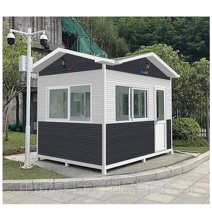 關于不同分類的崗亭的功用 1、活動崗亭。 活動崗亭是一種以輕鋼為骨架,以夾芯板為圍護材料,以標準模數(shù)系列進行空間合,構件采用螺栓連接,全新概念的環(huán)保經(jīng)濟型活動崗